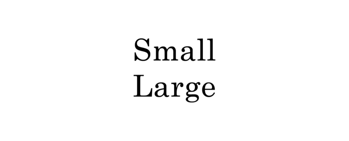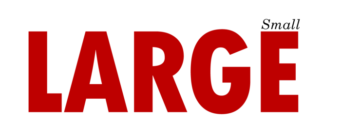 کنتراست متن را جالب میکند و میتواند به شما در ارتباط با ایدههایی که میخواهید بر آنها تأکید کنید، کمک کند. تغییر اندازه، نوع حروف، وزن، رنگ و سبک میتواند بر طرحهای شما تأثیر زیادی بگذارد و ایدههای شما را سازماندهی کند. در زیر میتوانید ببینید که چگونه کنتراست به شما کمک میکند تا ظاهری جالب، جلب توجه و حتی معنادار به متن خود بدهید. در زیر، کلمه ” Small ” سیاه است، راست تراز شده، سبک وزن، در حروف خطی ایتالیک با فاصله بیشتر بین حروف. ” Large ” قرمز، سنگین و دارای حروف معمولی بدون سریف است و حدود 10 برابر بزرگتر از کلمه ” Small ” است.